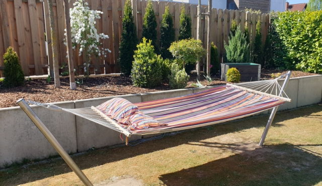- Hängematte mit Querstab für zwei Erwachsene Personen